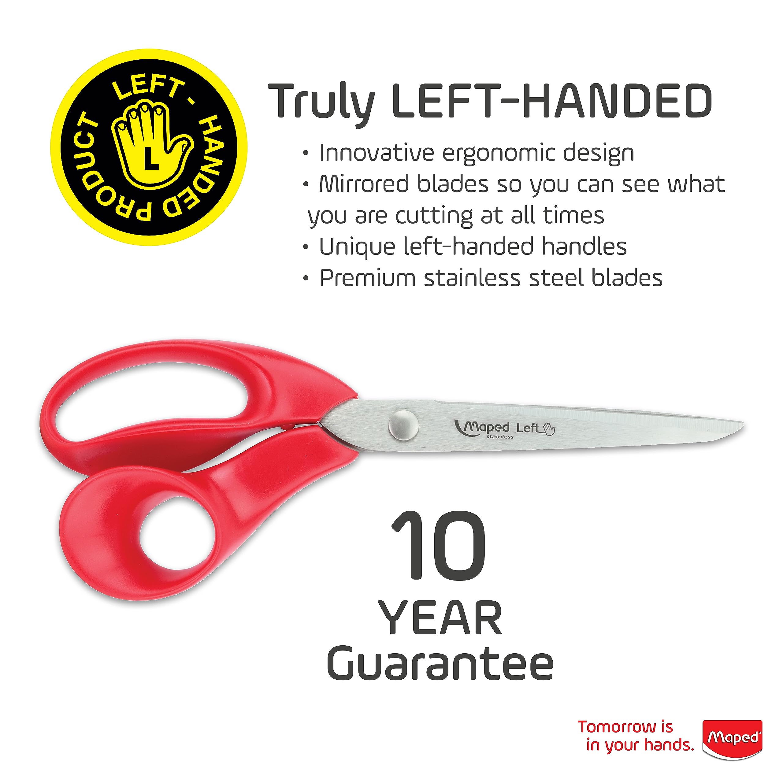 - LEFTIES REJOICE! FINALLY, SCISSORS JUST FOR YOU! - Specifically designed for left-handed users, these scissors feature a truly mirrored design that aligns the top blade to the outside cutting edge, making cutting easier and safer.
