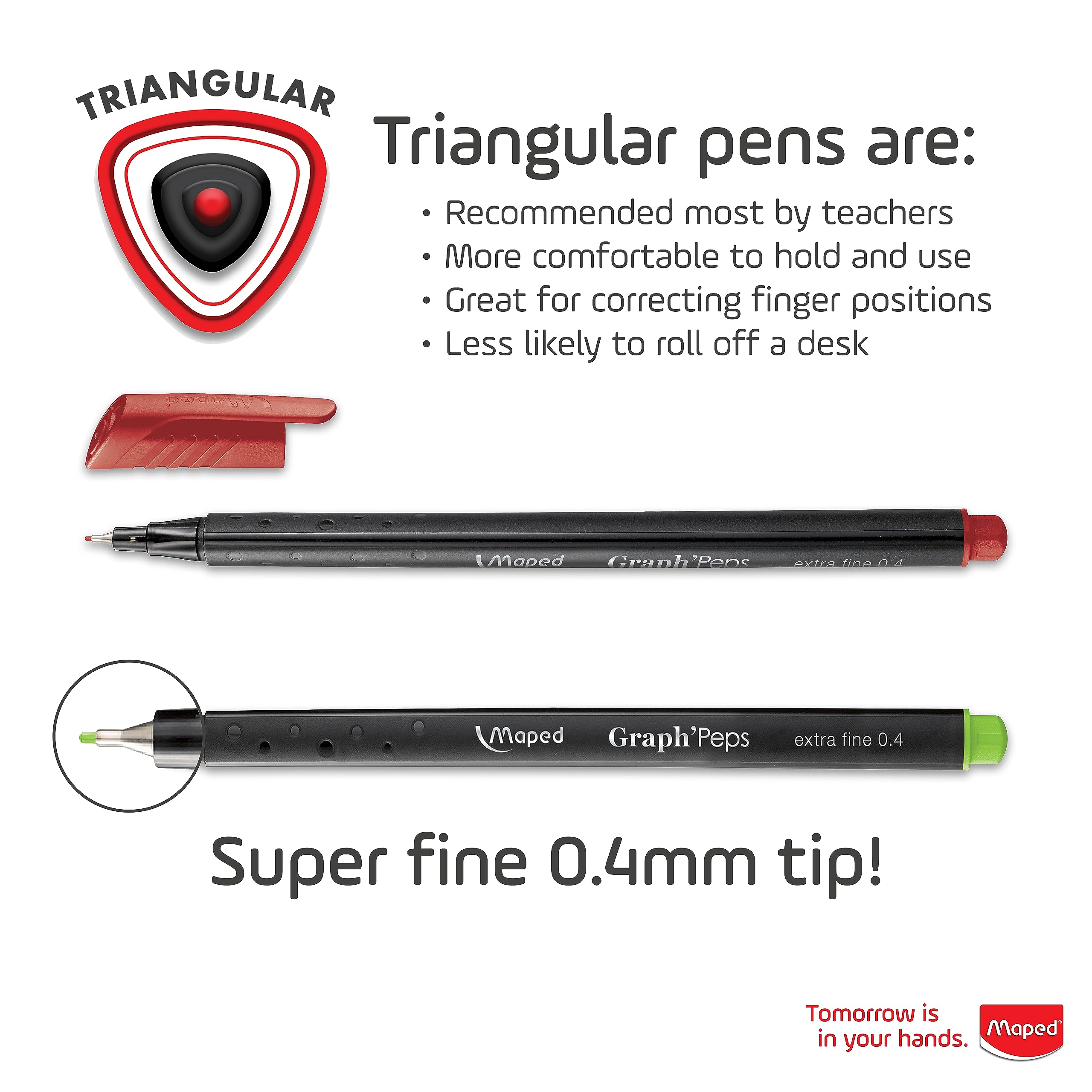 Maped - Graph'Peps Fine Tipped 0.4mm Fine Line Triangular Felt Pens - 20 Pack - Artists - Creating detailed illustrations - Smooth Precise Lines - Perfect for writing, drawing, sketching, and doodling